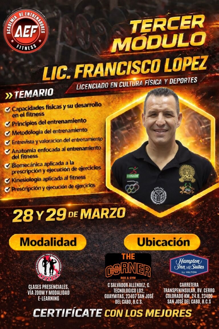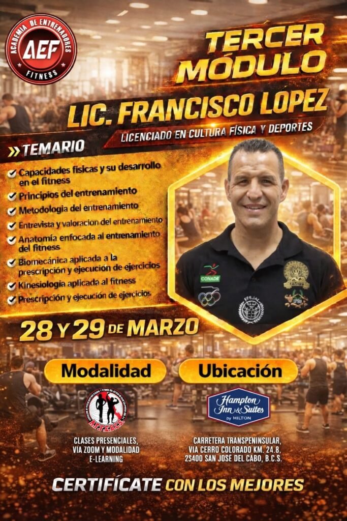 La AFFEBCS ha adoptado el nuevo sistema IFBB/FMFF el cual consta de 12 módulos (168 horas / 12 fines de semana ) .
